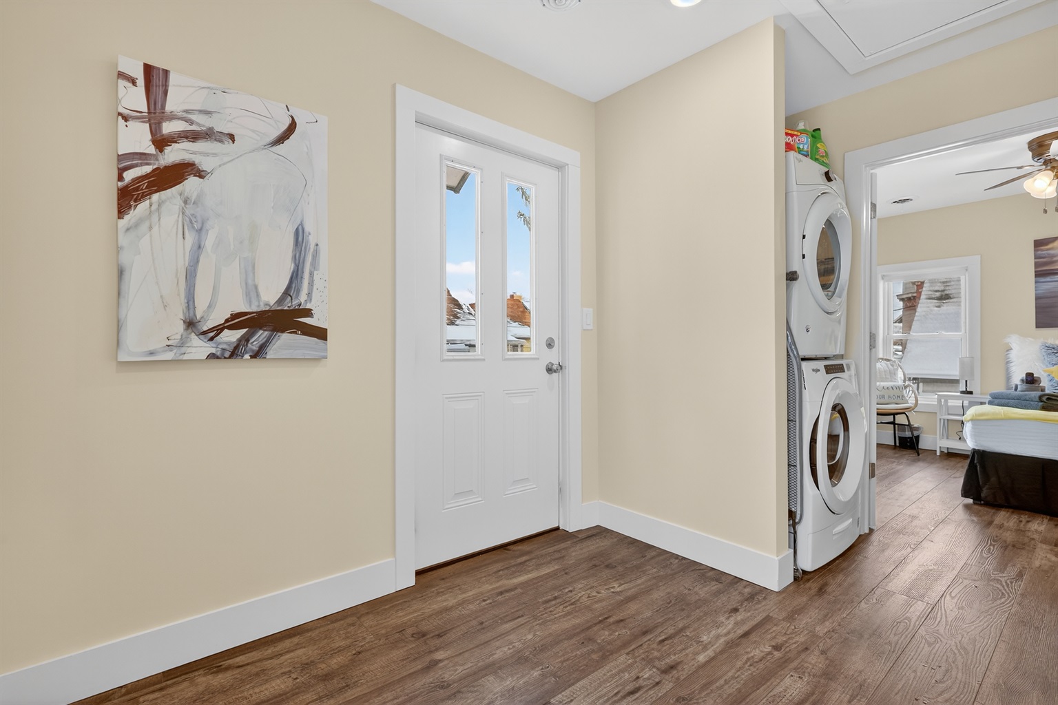 🛏️ The first bedroom features a cozy queen bed, while the second bedroom offers a full bed plus a twin-over-twin bunk bed—great for kids or extra guests.
